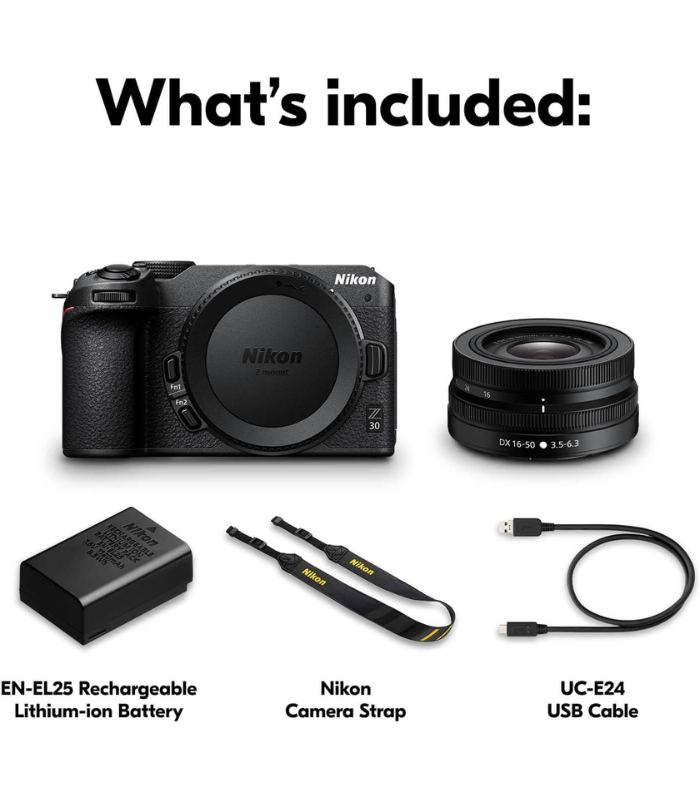 • Designed for creators, vloggers and streamers: Nikon’s easy to use Z 30 mirrorless 4K camera with a versatile 16-50mm wide-angle zoom lens